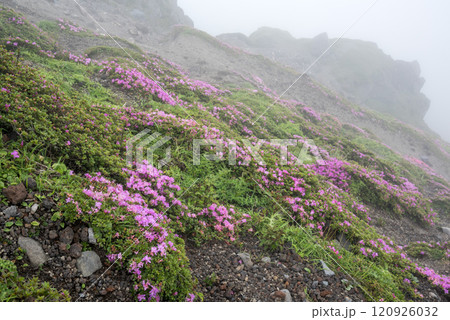 高千穂峰のガレ場に咲くミヤマキリシマ