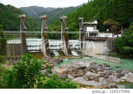 宮崎県三股町を走る剣道33号線と並行して流れる沖水川ある新緑と紅葉の美しい長田峡