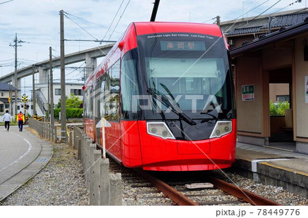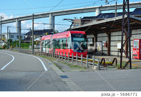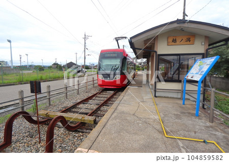 万葉線 終着駅の越ノ潟駅とアイトラム車両(富山県射水市)