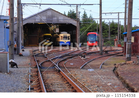 万葉線 米島口停留所横の車両庫(富山県高岡市)