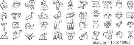 ベクターでモノクロのモチベーションに関する線画アイコンセット