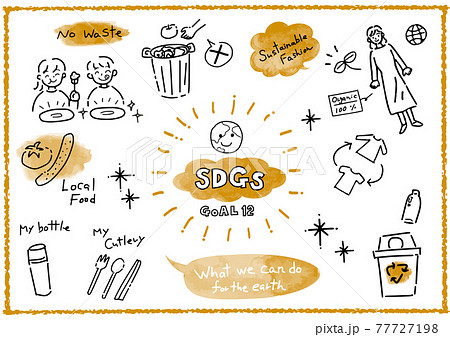 SDGs目標12イメージのメッセージとシンプル線画イラスト