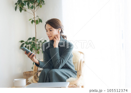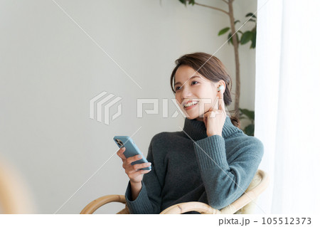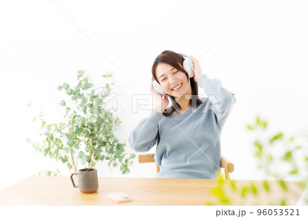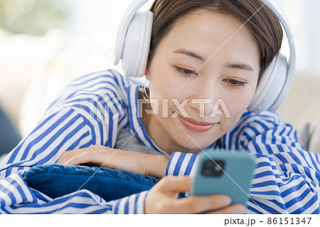 ヘッドホン くつろぐ 30代女性