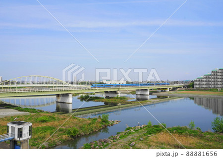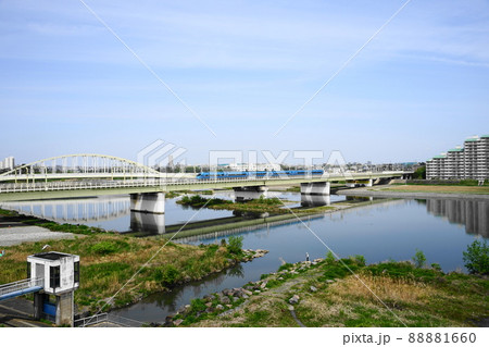 4月 狛江178小田急線ロマンスカー60000形MSE車と多摩川橋梁
