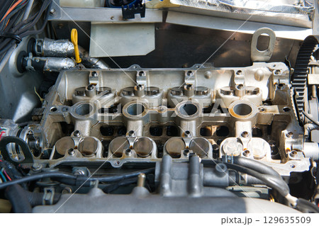 カムシャフトを外した直列4気筒エンジン