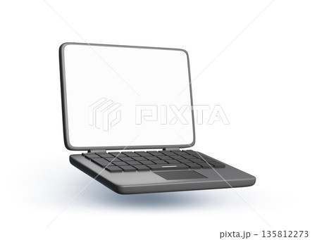 3d notebook laptop computer with blank screen. Realistic vector mockup for business presentation, remote work, online education, website development. Office digital gadget with monitor and keyboard