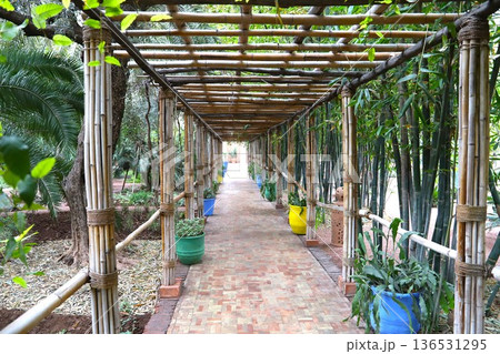 モロッコのマラケシュにあるマジョレル庭園内部景観1
