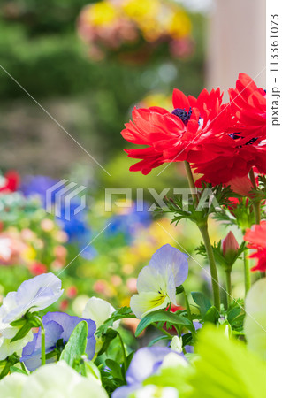 早春の安曇野ちひろ公園 パンジーの花