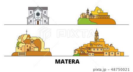 Italy, Matera flat landmarks vector illustration. Italy, Matera line city with famous travel sights