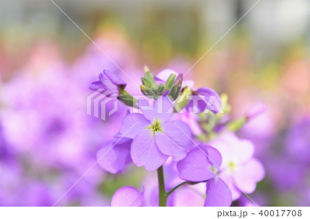 紫色のストックの花が咲いています。学名はMatthiola incanaです。