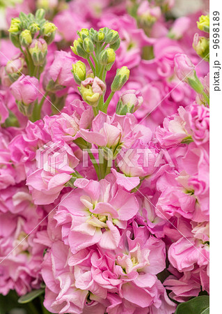 ピンク色のストックの花が咲いています。学名はMatthiola incanaです。