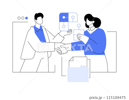 Agreement between two parties. Collaboration and merging of teams. Team integration, contract negotiations, and joint ventures. Efficiency, innovation, and shared success.