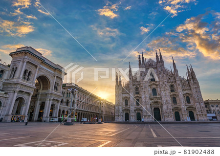 Milan Italy, sunrise city skyline at Milano Duomo Cathedral empty nobody