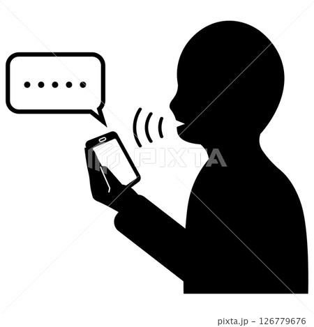 音声認識でスマートフォンに話しかける人物のシルエット
