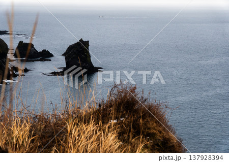 冬の礼文島・桃岩展望台から望む海の風景