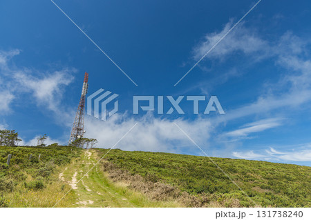 ニュージーランド ウェリントンのスカイライン・ウォークウェイから見えるマウント・カウカウのラジオ塔