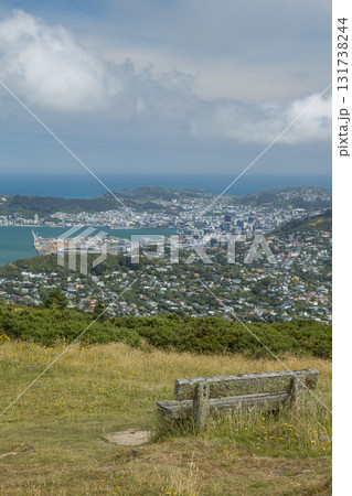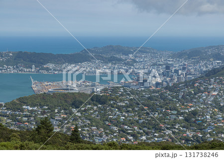 ニュージーランド ウェリントンのマウント・カウカウから眺める市街地と港