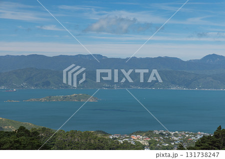 ニュージーランド ウェリントンのマウント・カウカウから眺める街並みとウェリントン湾