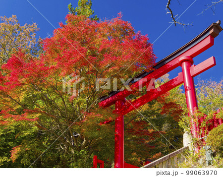 鳥居と紅葉 ローアングル