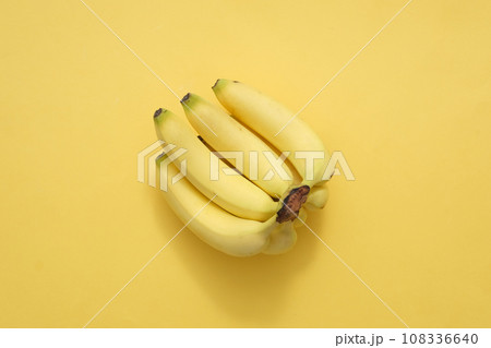 Top view of bunch of ripe yellow bananas isolated on yellow background. Bananas are rich in nutrients such as vitamin C and vitamin E, which help to remove wrinkles and keep the skin young and smooth.