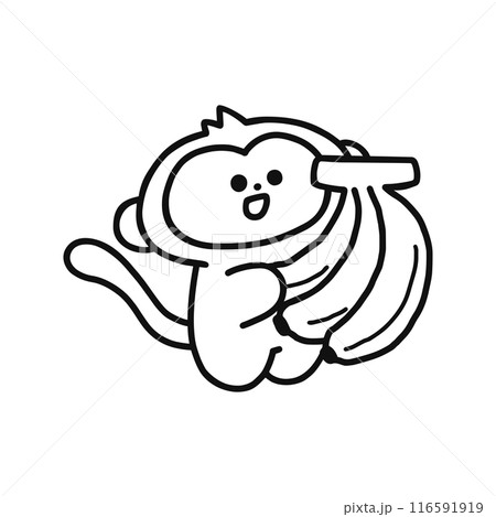 バナナを持ったかわいい猿のイラスト・線画