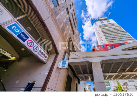 日本の東京都市景観9月7日。東京メトロ 後楽園駅や丸ノ内線、文京区役所などを望む