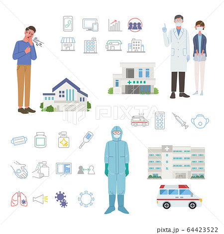 コロナウイルス 感染症対策 アイコン イラスト セット