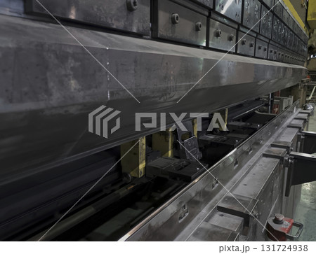 ベンダーで鋼材を曲げるオペレーター(加圧中)工場 鉄工所