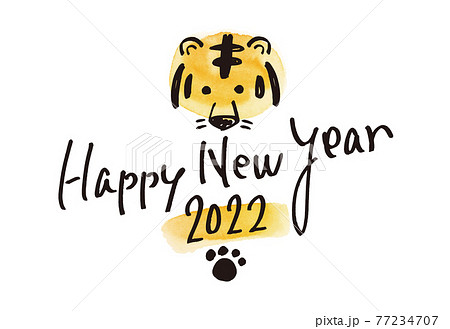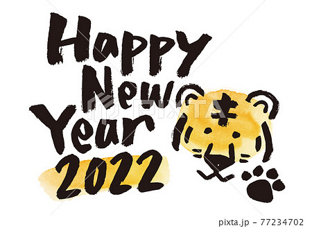 水彩ワンポイントで手書き風!2022年の年賀状 筆ペン書き Happy Ner Year 横版