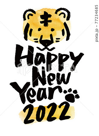 水彩ワンポイントで手書き風!2022年の年賀状 筆ペン書き Happy Ner Year 縦版