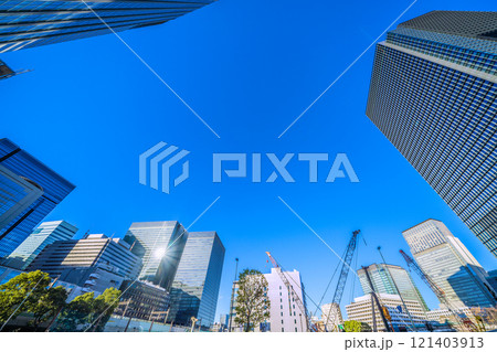 日本の東京都市景観 太陽光を反射する大手町プレイスや常盤橋タワー、再開発などを望む…=22日