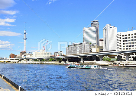 東京都、隅田川の風景(隅田川橋梁、蔵前橋間)