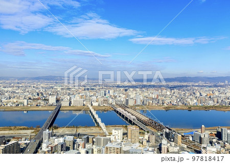 大阪府 梅田スカイビルからの淀川方面の眺め