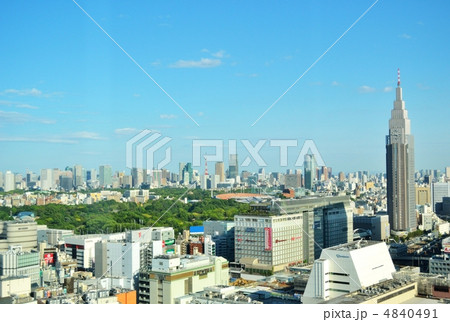 日本の東京都市景観 NTTドコモ代々木ビルや特急などを望む