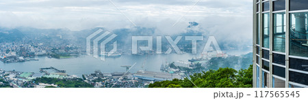 稲佐山展望台から霧・雲の長崎市街地 パノラマ 【長崎市】