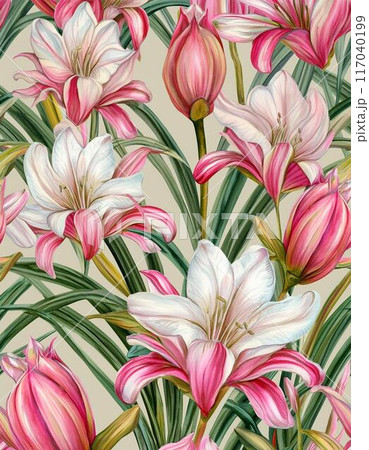 Seamless pattern, Nerine Lily flowers , vintage style , water color design , AI generated