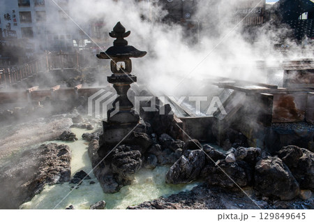 草津温泉の象徴-湯畑の風景
