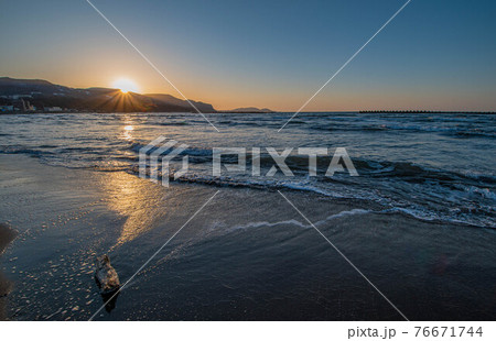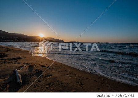 春の銭函海岸の夕日