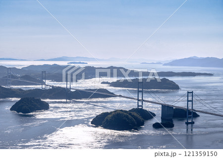 しまなみ海道 亀老山展望公園から望む来島海峡大橋と瀬戸内海 午後の光 Nikon Z50撮影