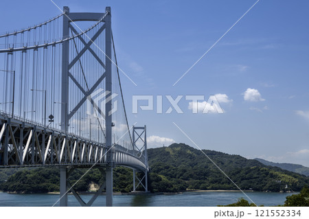 しまなみ海道にかかる多々羅大橋と青い空
