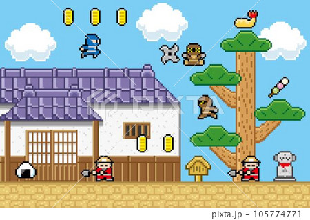 忍者ゲーム風ドット絵 キャラクターとアイテムセット