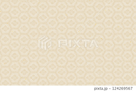 シームレスな和柄和紙のパターン。ベージュ、亀甲花菱模様。