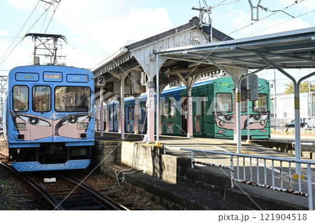 上野市駅の伊賀鉄道 忍者列車とふくにん列車