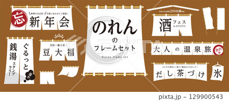 暖簾のフレーム素材セット(フレーム、見出し、のれん、Noren、のぼり、垂れ幕)/白色
