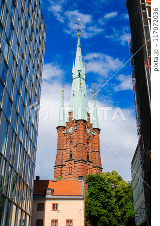 Centralpalatset building, and tower of Klara Church, or Klara kyrka, located in Norrmalm district, Stockholm, Sweden