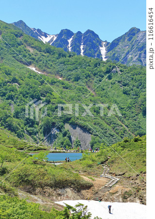 雷鳥沢登山道から見る室堂平と薬師岳 北アルプス劔岳登山