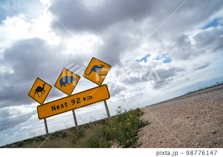 オーストラリア南部のナラボー平原にある動物注意の看板