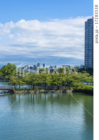 川崎橋の上から見た大川沿いの市街地風景 大阪市