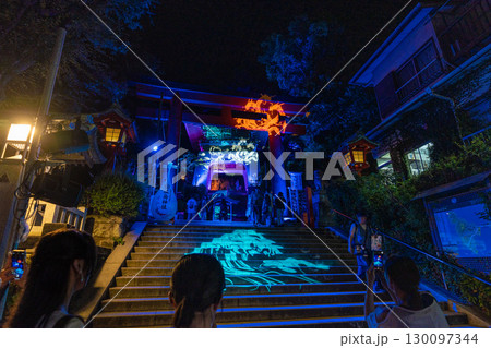 日本の藤沢都市景観 ライトアップされた江島神社・日本三大弁財天などを望む