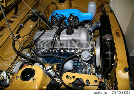 キャブレターとファンネルが輝くエンジンルーム… L型エンジンが搭載された旧車